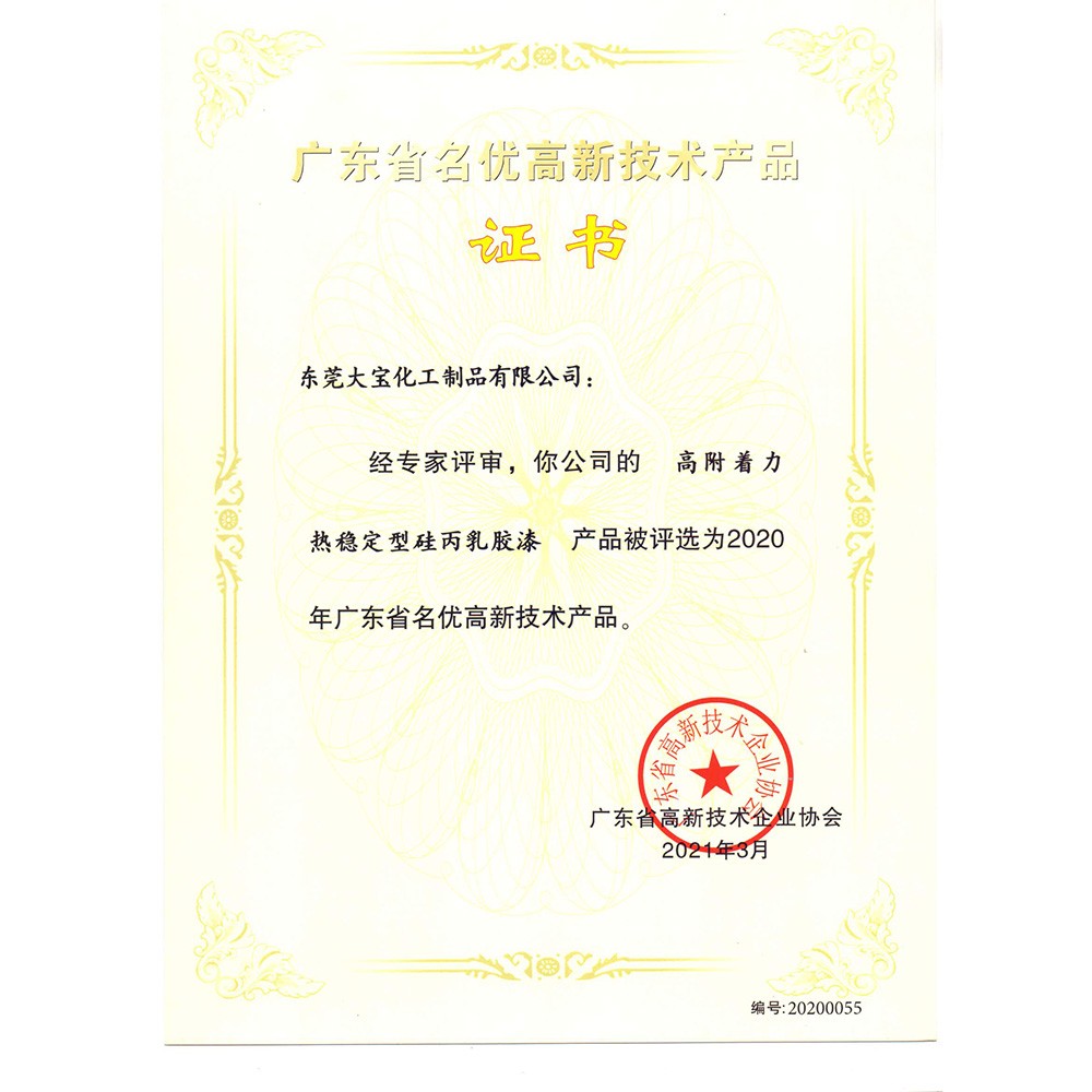 廣東省名優高新技術產品證書(乳膠漆)