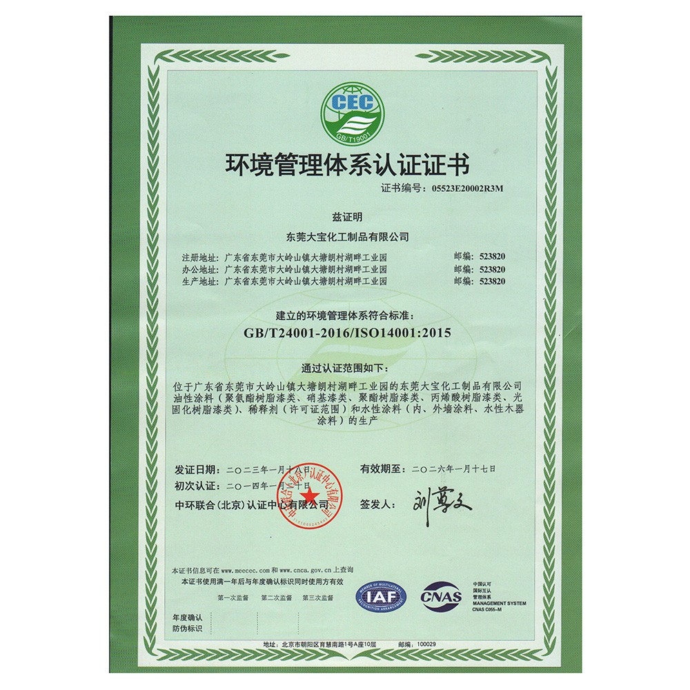 環境管理體系認證(東莞大寶)