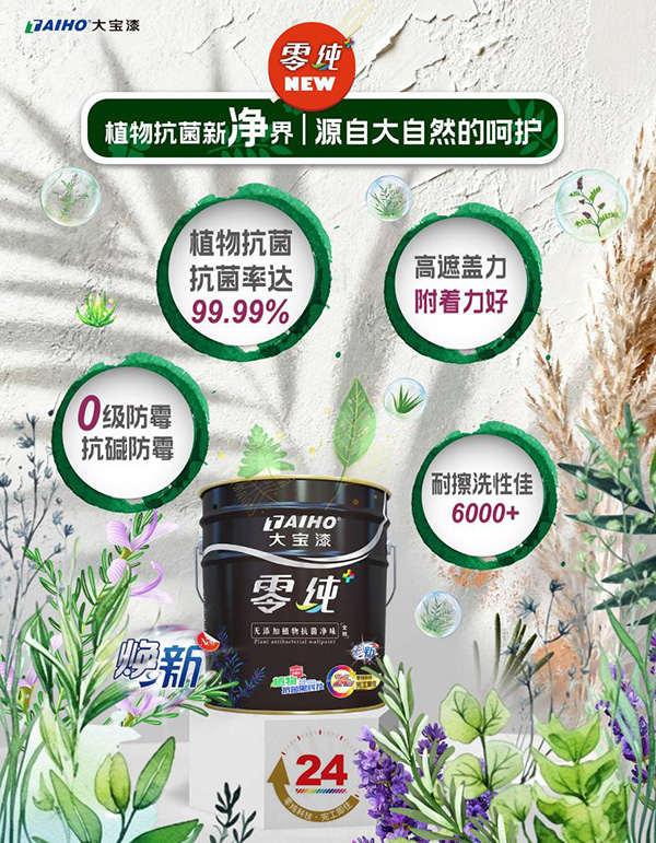 大寶漆「零純+植物抗菌」系列煥新升級,融合【無添加】凈味配方,完成從“抗菌防霉”到“純凈呼吸”的安全躍升—無論新房初裝,還是舊居翻新,皆可安心交付。