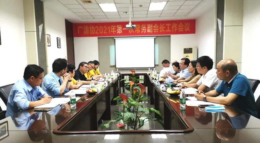 4月14日下午,由廣東省涂料行業(yè)協(xié)會(huì)會(huì)長(zhǎng)陳冰、名譽(yù)會(huì)長(zhǎng)黃開(kāi)、秘書(shū)長(zhǎng)呂水列、副秘書(shū)長(zhǎng)陳麗霞,以及常務(wù)副會(huì)長(zhǎng)單位:巴德士董事長(zhǎng)方學(xué)平、東莞大寶副總經(jīng)理葉子琛/培訓(xùn)學(xué)校校長(zhǎng)龔運(yùn)德、珠涂公司總經(jīng)理田巧、嘉寶莉公關(guān)總監(jiān)龍平、江門(mén)制漆董事長(zhǎng)黃幗清、廣州擎天總經(jīng)理張捷、巴德富公眾關(guān)系總監(jiān)唐紅衛(wèi)等副會(huì)長(zhǎng)單位共同參與的廣涂協(xié)2021年第一次工作會(huì)議在東莞大寶化工順利召開(kāi)。