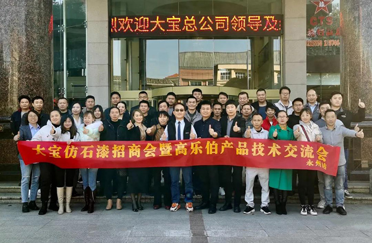 11月30日,大寶仿石漆招商會(huì)暨高樂伯產(chǎn)品技術(shù)交流會(huì)(永州站),在美麗的瀟湘永州市寧遠(yuǎn)縣隆重舉行,會(huì)議分成大寶仿石漆招商和高樂伯產(chǎn)品技術(shù)交流兩大部分。