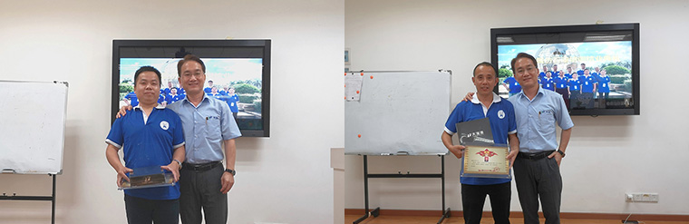 培訓期間,評委老師們為學員們的作品進行了評分,評選出兩位優秀學員,是來自南昌大寶的陳世水和毛端康。由經銷事業部葉副總為優秀學員頒發獎牌與禮品。
