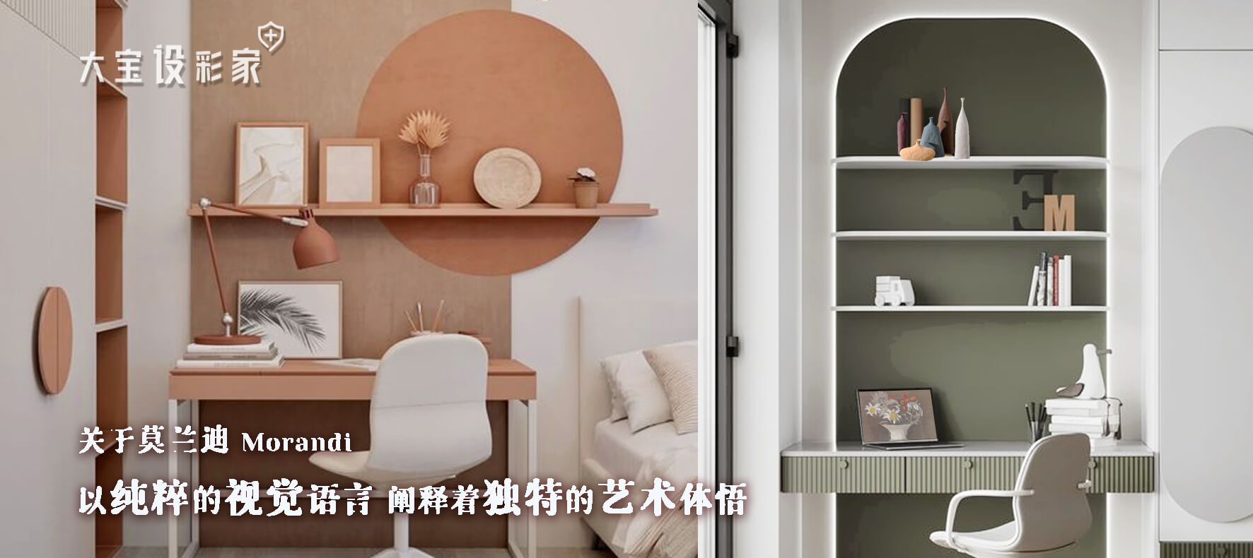 以上5種配色靈感,可以直觀感受到莫蘭迪色是拯救整體大面積色彩的法寶,在空間色彩的配置上,減少視覺刺激的低彩度配色成為室內色彩搭配的主流,柔化創造空間亮點,又著迷高雅的藝術格調,絕對不能錯過大寶設彩家推薦的莫蘭迪色系帶來的視覺悸動,讓回到家=走進舒服溫馨的氛圍,凝聚出歲月靜好的美。