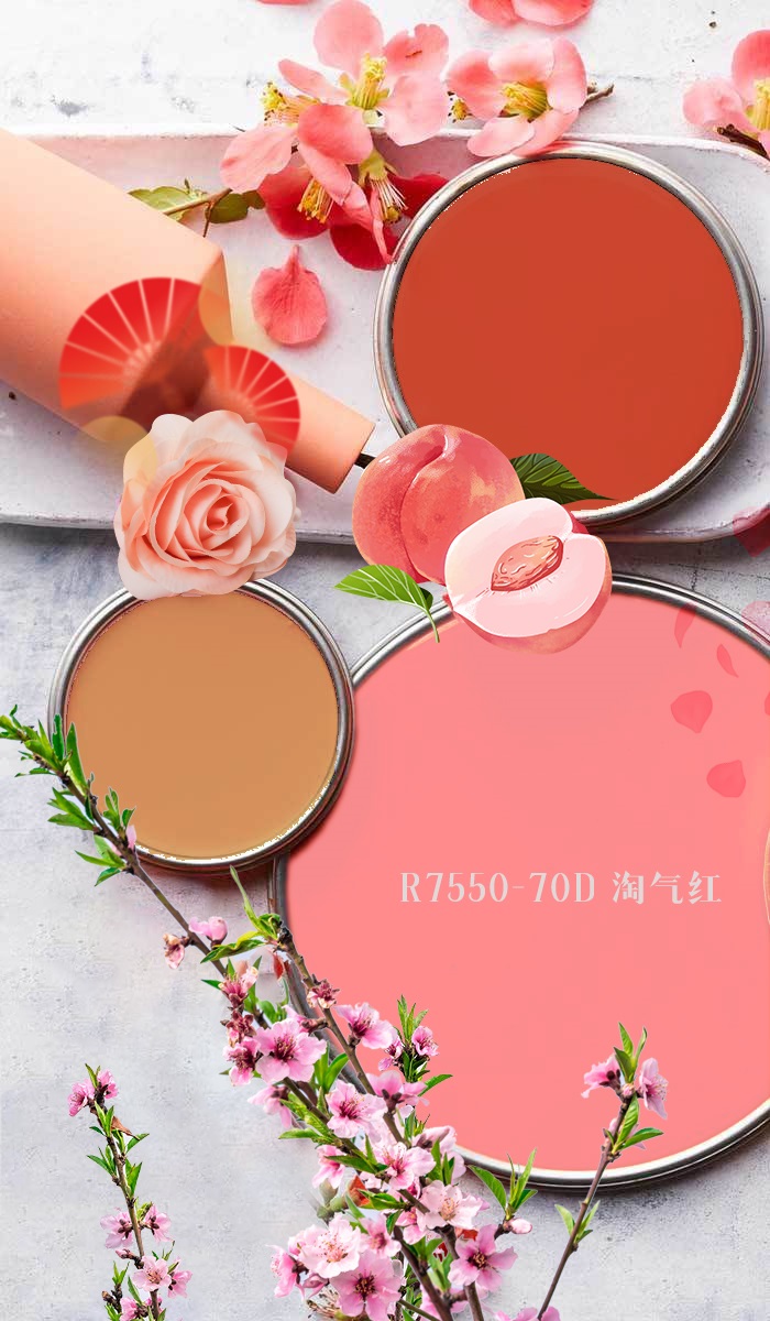 淘氣紅帶著白色的清新并結合紅色的溫暖,呈現出柔和與亮麗之間的平衡。命名來源于桃的顏色,這不僅是一種視覺上的聯想,亦是情感上的共鳴。桃子果皮的微微粉紅,讓人想到自然甜美與生機勃勃的春天,而“淘氣”則賦予了這一色彩更多的個性與靈動,既柔和又充滿活力。